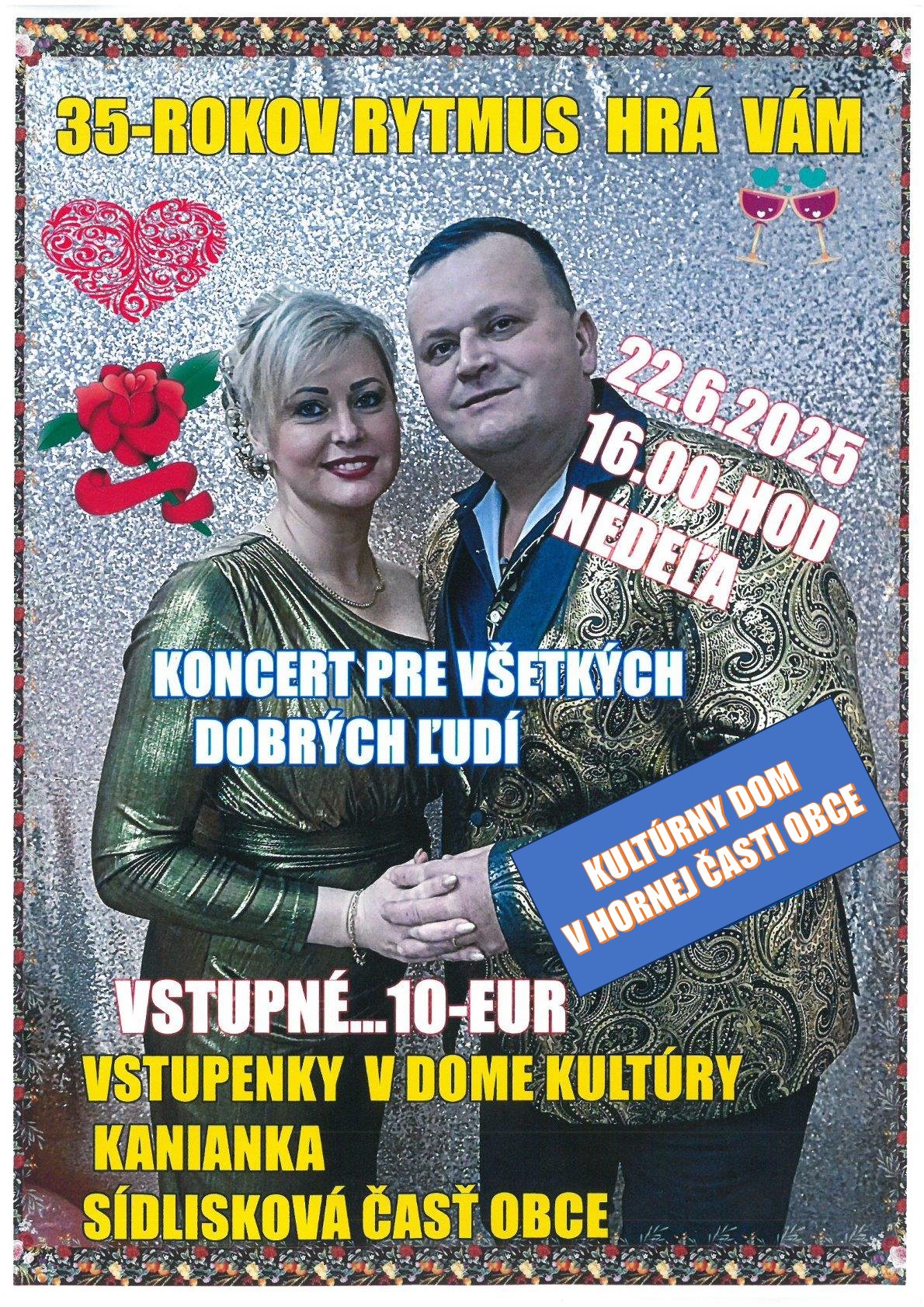 V nedeľu 22.6.2026 o 16:00 hod v Kultúrnom dome v hornej časti obce.