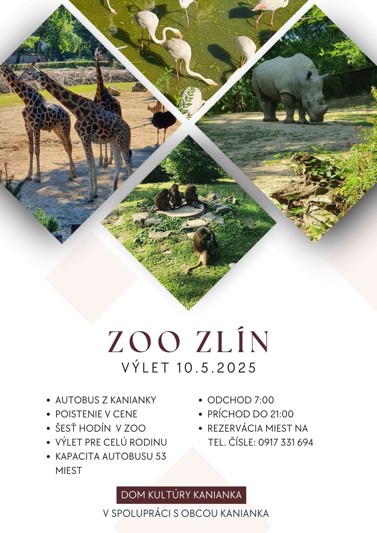 Priatelia, podarilo sa nám rezervovať autobus a tak Vás touto cestou pozývame na výlet do Zlínskej zoologickej záhrady. Cena 18 EUR/dospelý a 16 EUR/dieťa zahŕňa prepravu tam a späť + poistenie.